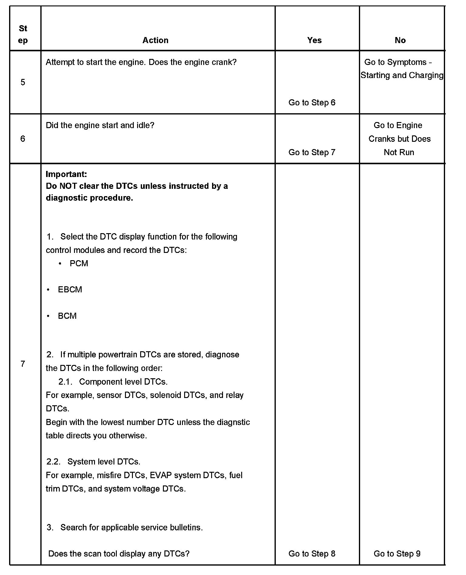 DESCRIPTIONThe Diagnostic System Check is an organized approach to identifying a condition created by an electronic engine control system malfunction. The Diagnostic System Check must be the starting point for any driveability concern. The Diagnostic System Check directs the service technician to the next logical step in diagnosing the concern. Understanding the table and using the table correctly reduces diagnostic time and prevents the replacement of good parts.