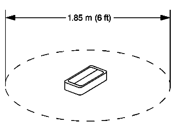 7. Clear a space on the ground about 1.85 m (6 ft) in diameter for deployment of the inflator module. If possible, use a paved, outdoor location free of activity. Otherwise, use a space free of activity on the shop floor. Make sure you have sufficient ventilation.