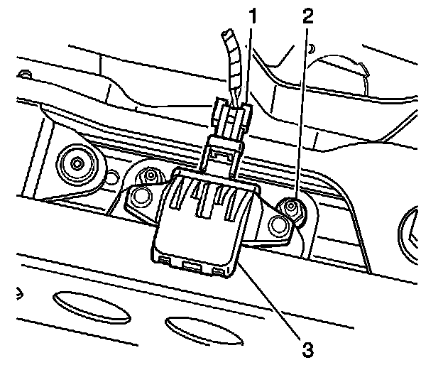 3. Locate the seat position switch (3) under the seat on the inside of the inner seat rail.