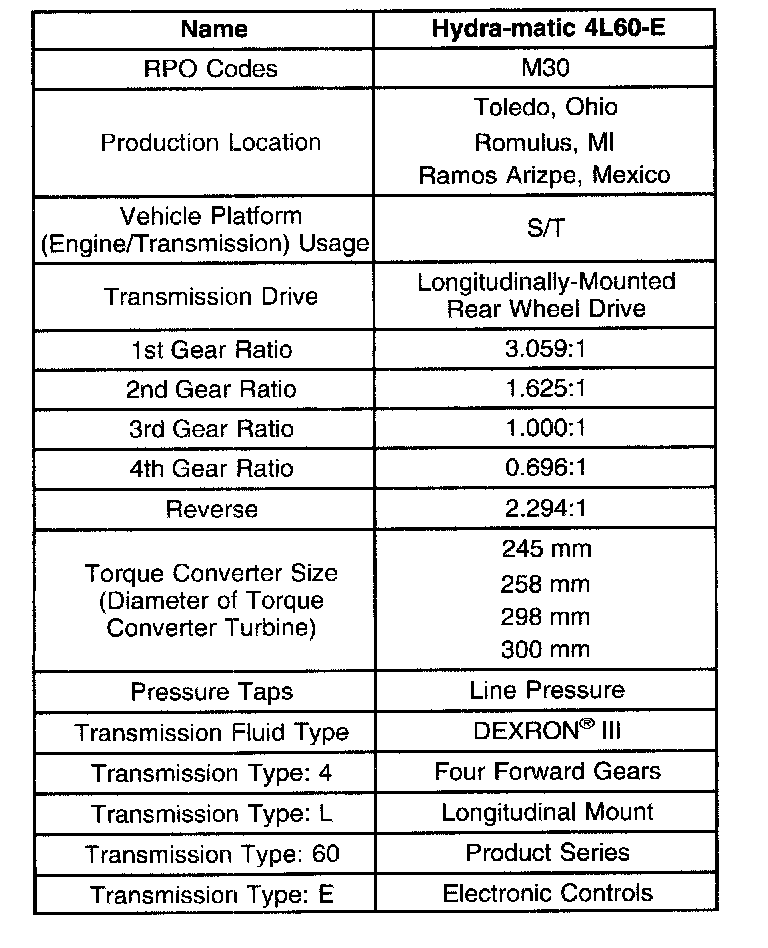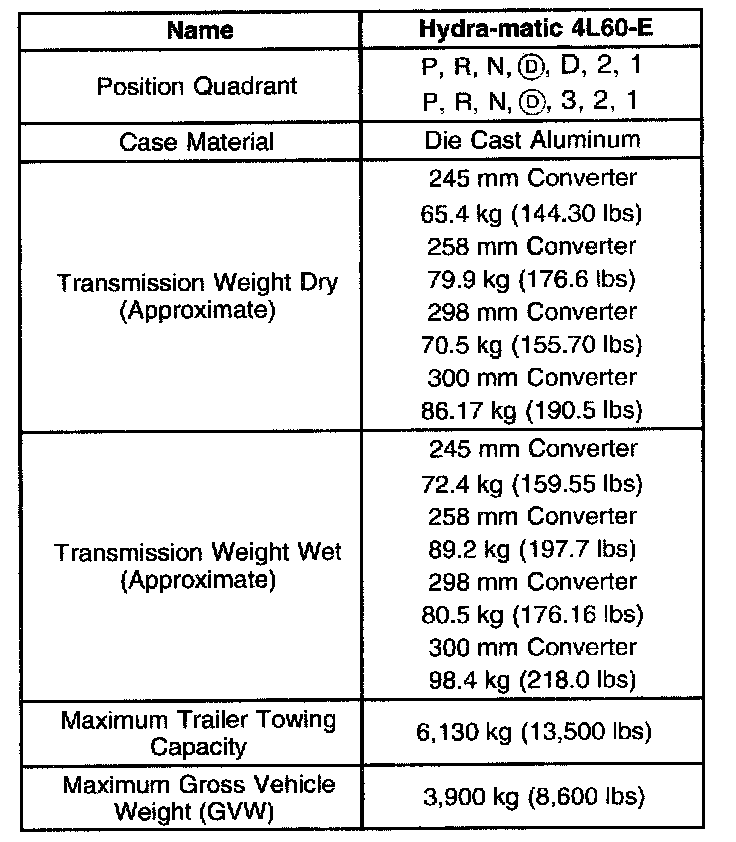 Transmission General Specifications
