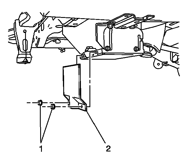 5. Remove the rear battery cover bolts (1) and cover (2).