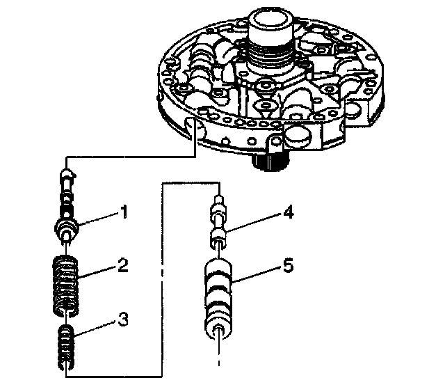 6. Remove the pressure regulator isolator spring (3) and the pressure regulator valve spring (2).