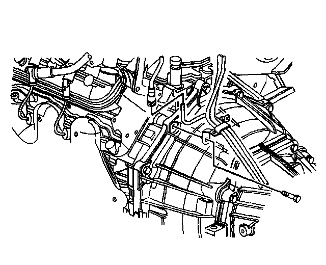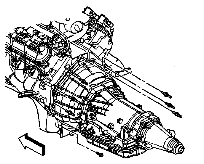 19. Disconnect the transmission oil cooler lines from the transmission. Refer to Transmission Fluid, Cooler Hose/Pipe Replacement.