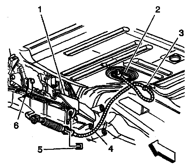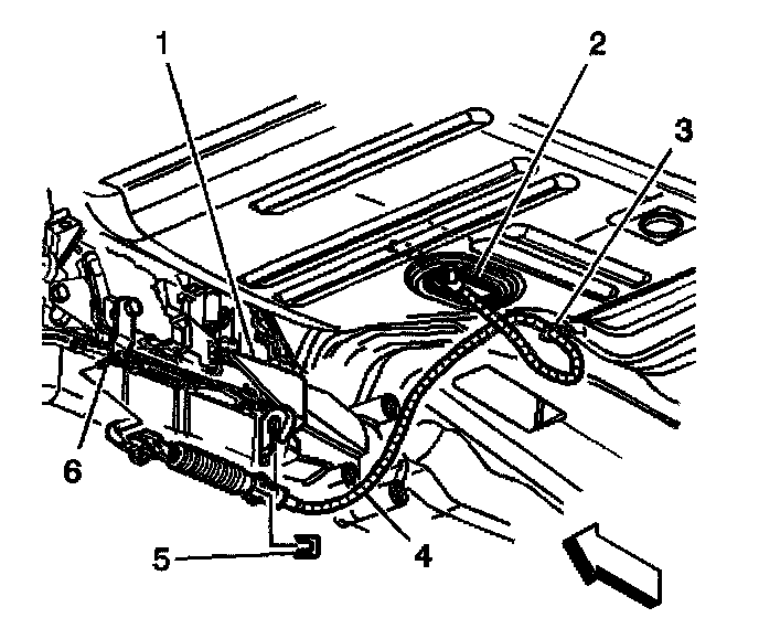 6. Remove the cable from the retainer (3) on the floor panel.