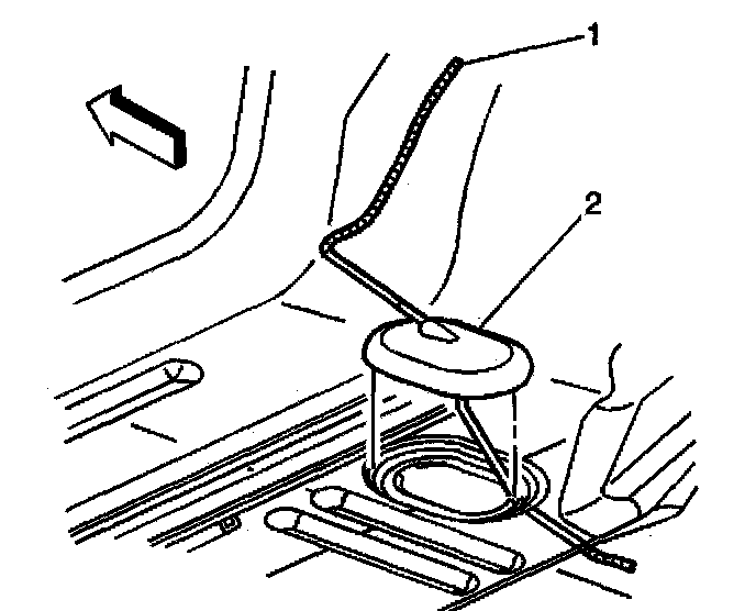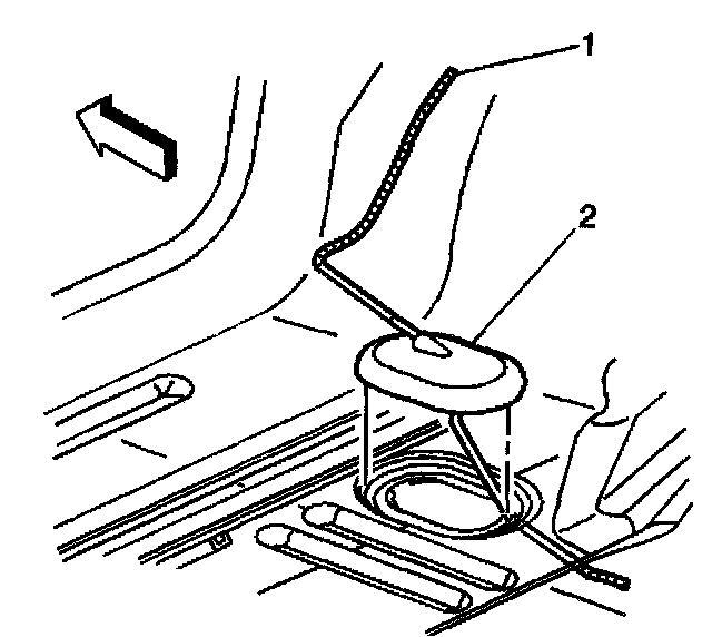 1. Push the cable down through the floor panel and install the grommet (2).