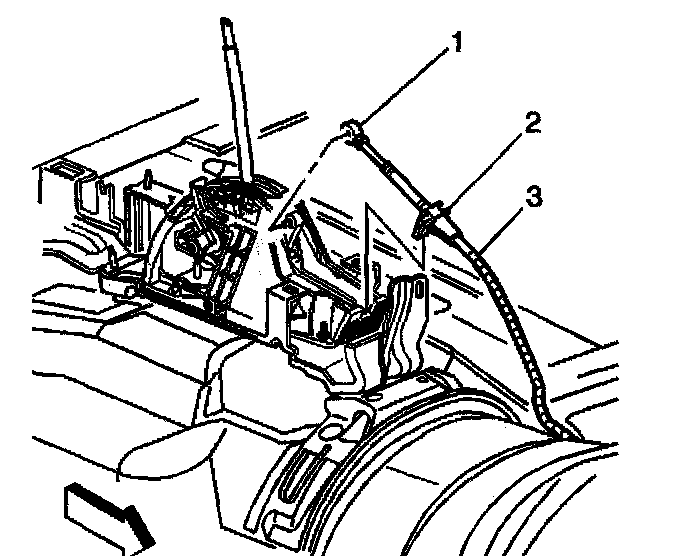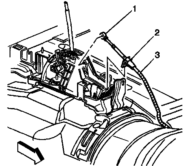 13. Remove the range selector cable.(3) from the vehicle.