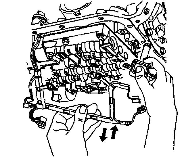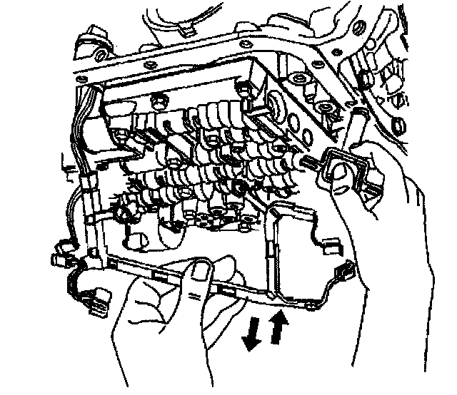 Important: Keep the control valve body level when lowering it from the vehicle. This will prevent the loss of checkballs located in the control valve body passages.