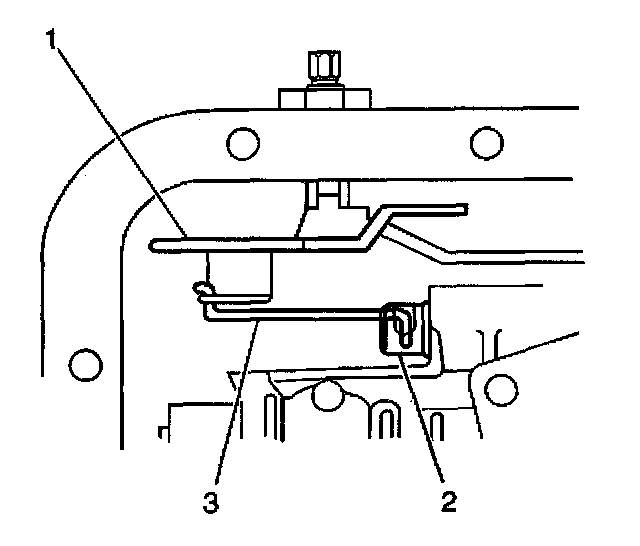 3. Verify that the manual valve link (3) is installed properly to the inside detent lever (1) and the manual valve (2).