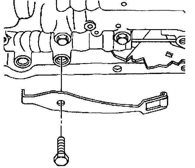 5. Do not install the transmission fluid indicator stop bracket and bolt at this time. Install but do not tighten the control valve body bolts which retain only the valve body directly.