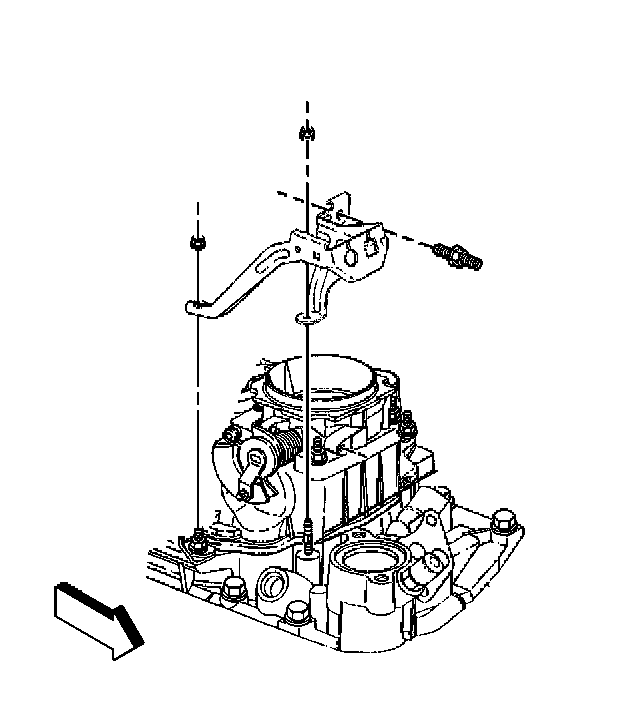 11. Remove the accelerator cable bracket nuts and stud.