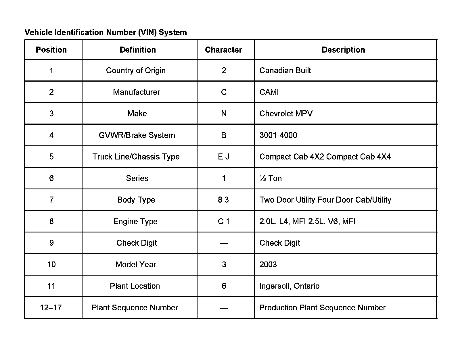 VEHICLE IDENTIFICATIONVehicle Identification Number (VIN) System: