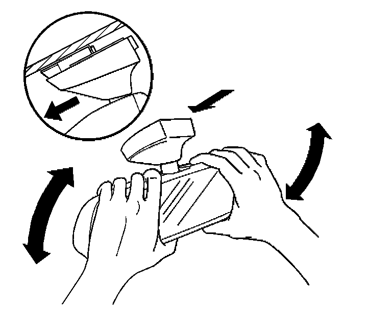 2. Turn the inside rearview mirror arm 90 degrees counterclockwise in order to release the arm of the mirror from the mounting base.