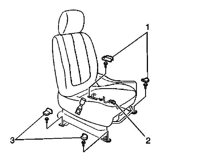 1. Remove the 4 front seat adjuster finish covers (1, 3) by sliding from the seat adjusters.
