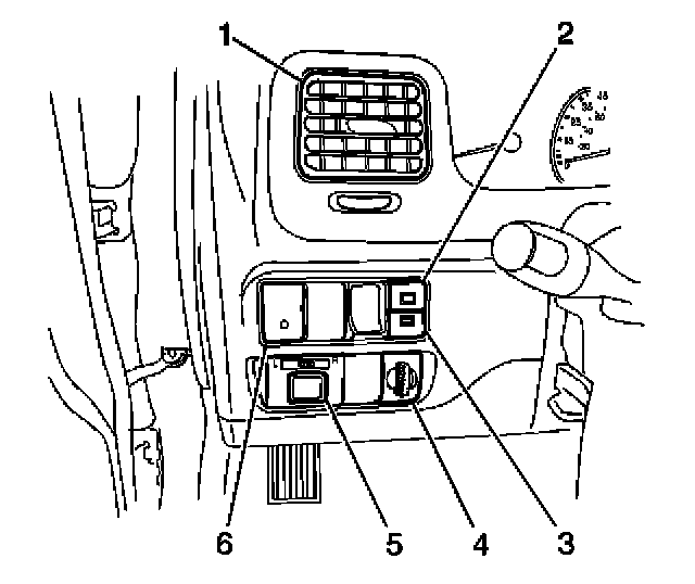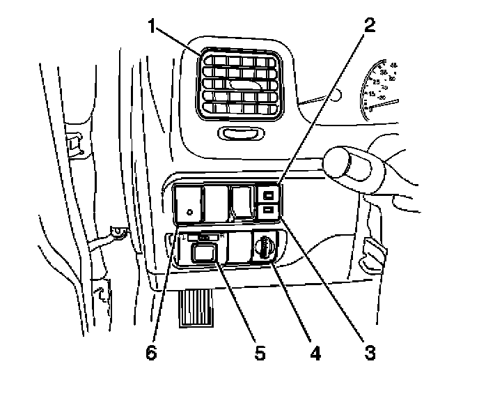 2. Release the upper and lower retaining tabs behind the instrument panel which secure the IP lamp dimmer control (4).