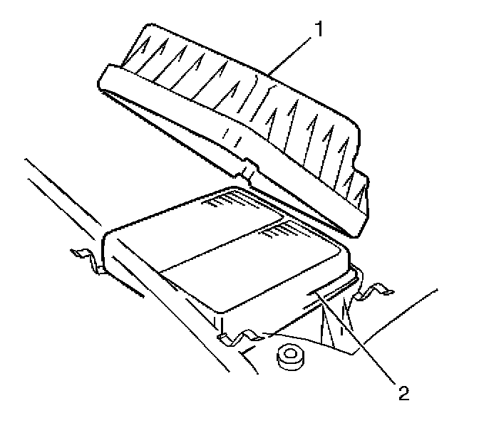 The intake air temperature (IAT) sensor (1) is located in the air cleaner assembly (2). The IAT sensor is a thermistor (a variable resistor that changes value when the temperature changes). The IAT sensor is connected in series with a fixed resistor in the powertrain control module (PCM). The PCM applies 5 volts to the IAT sensor. The PCM monitors the voltage drop across the IAT sensor and converts the voltage reading into a temperature value. The IAT sensor voltage reading at the PCM will vary with the changes in the intake air temperature.