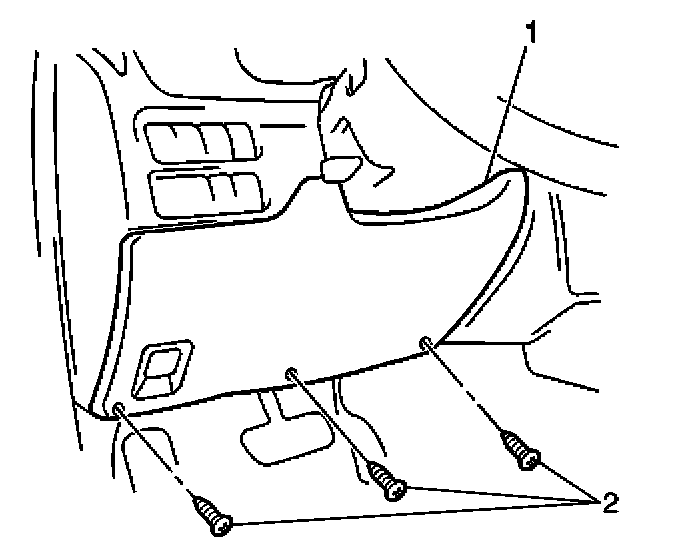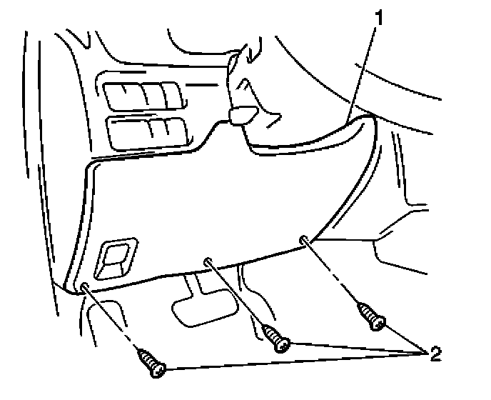 1. Install the IP drivers knee bolster panel (2 or 3). Secure the panel with the 4 bolts (1 or 4).
