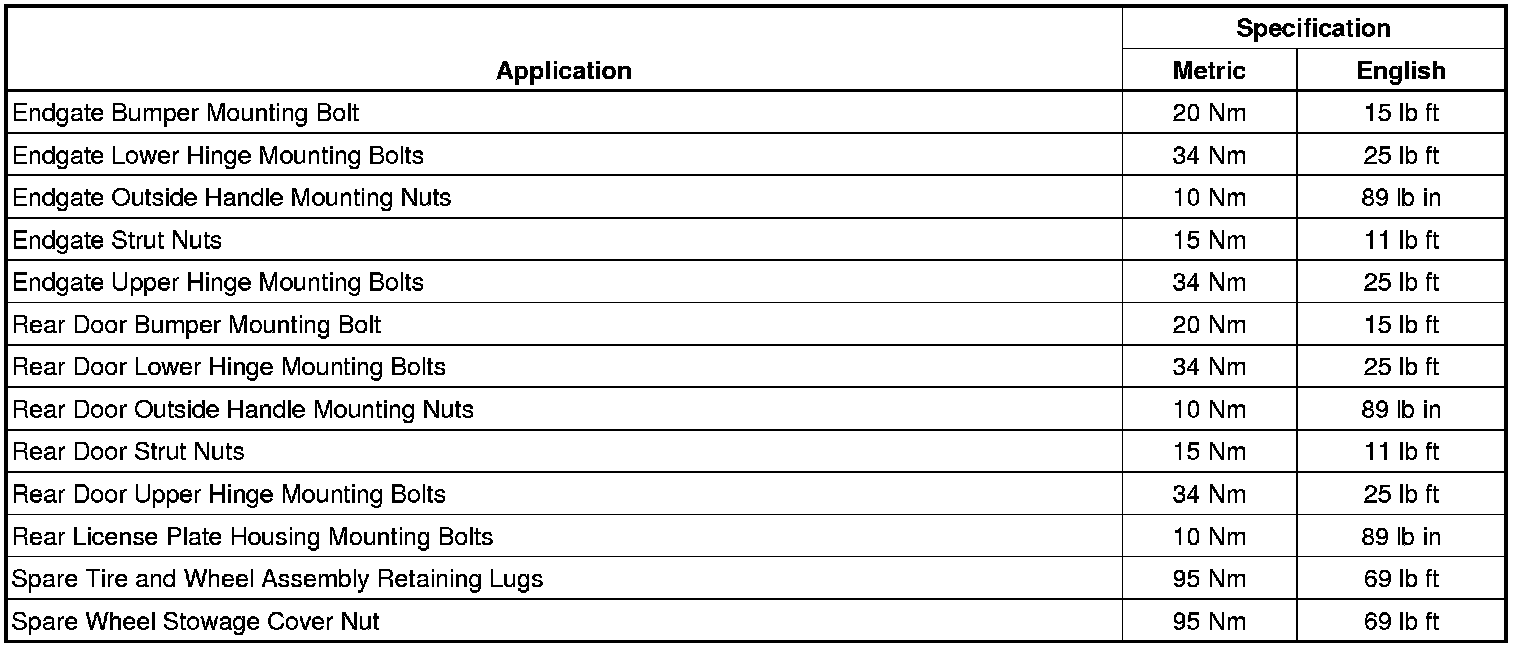 Body Rear End - Fastener Tightening Specifications