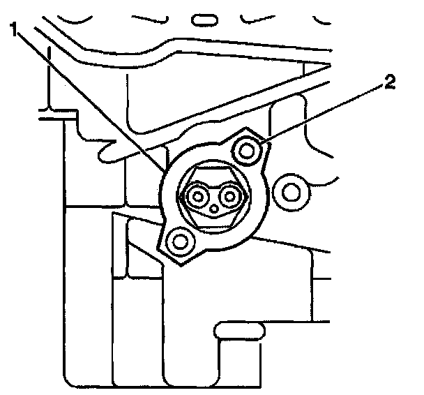 2. Insert the engine coolant heater (1) into the hole in the engine block.