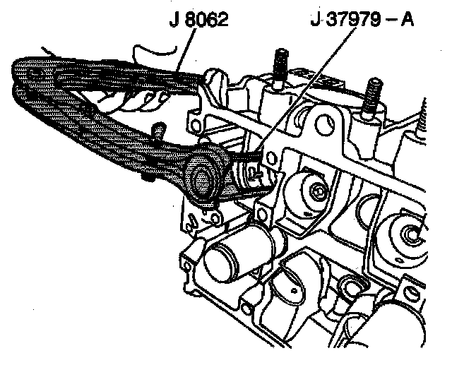 2. Compress the valve spring using the J 8062 and the J 37979.