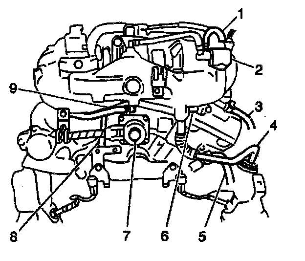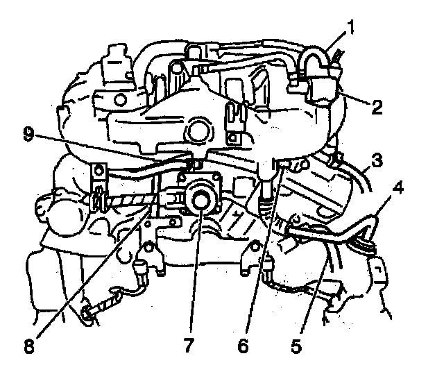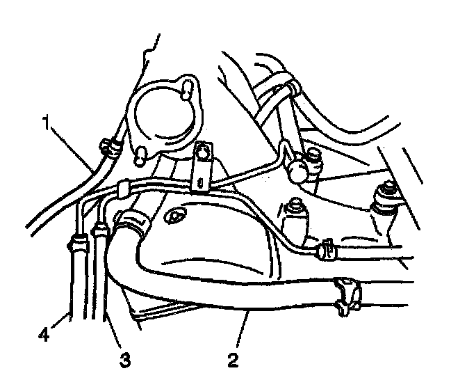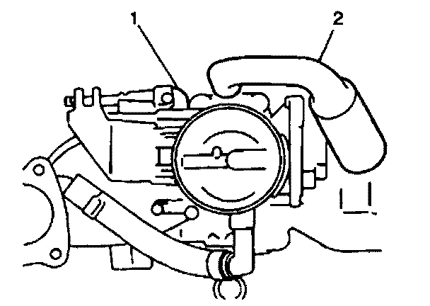 19. Disconnect the hose (2) from the idle air control (IAC) valve.