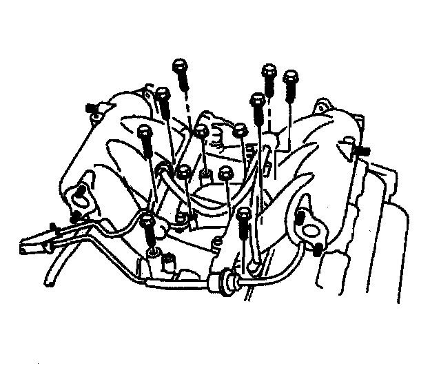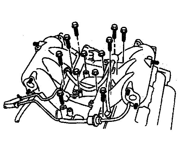 2. Install the intake manifold. Secure the intake manifold with the 8 bolts and 4 nuts.