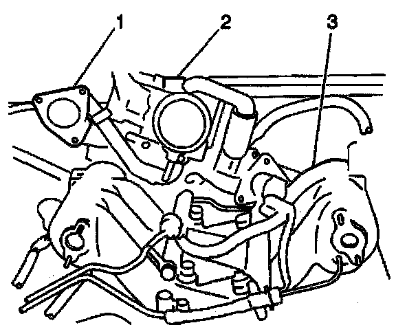 22. Remove the intake collector (1) and throttle body (2) from the intake manifold (3) as an assembly.