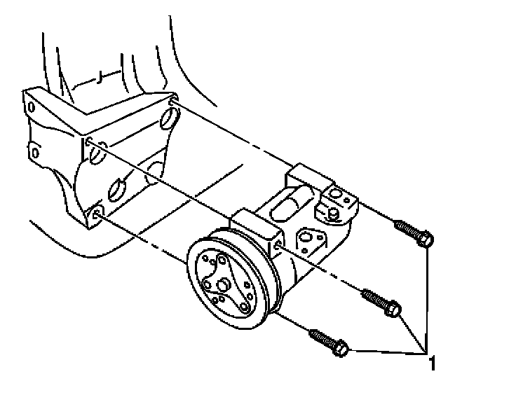 6. Remove the 3 bolts (1) that secure the A/C compressor and position the compressor aside.
