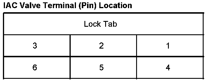 Use the table in order to locate the correct terminals to test during diagnosis. The table layout corresponds to the pin location of the IAC valve electrical terminals.