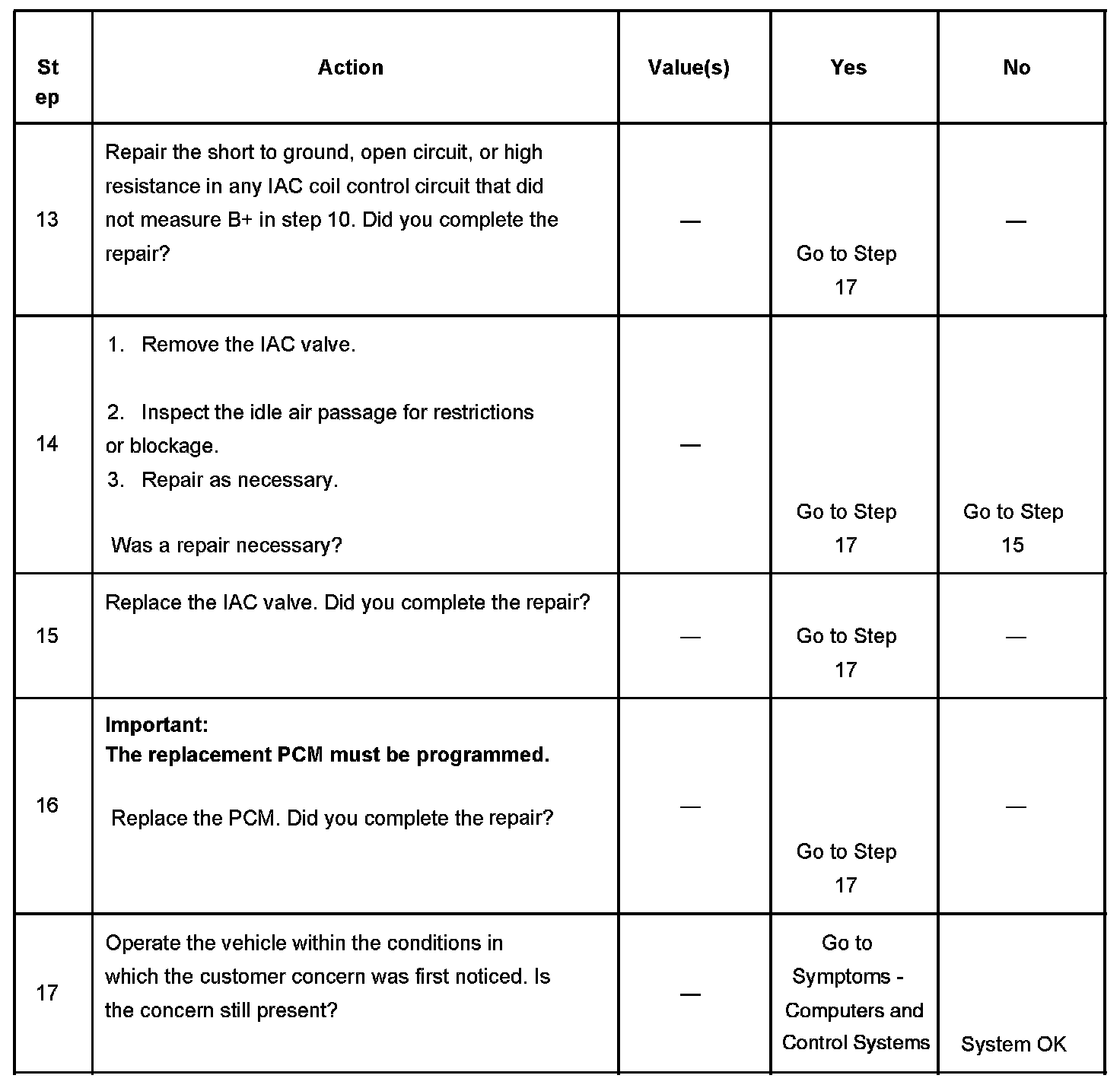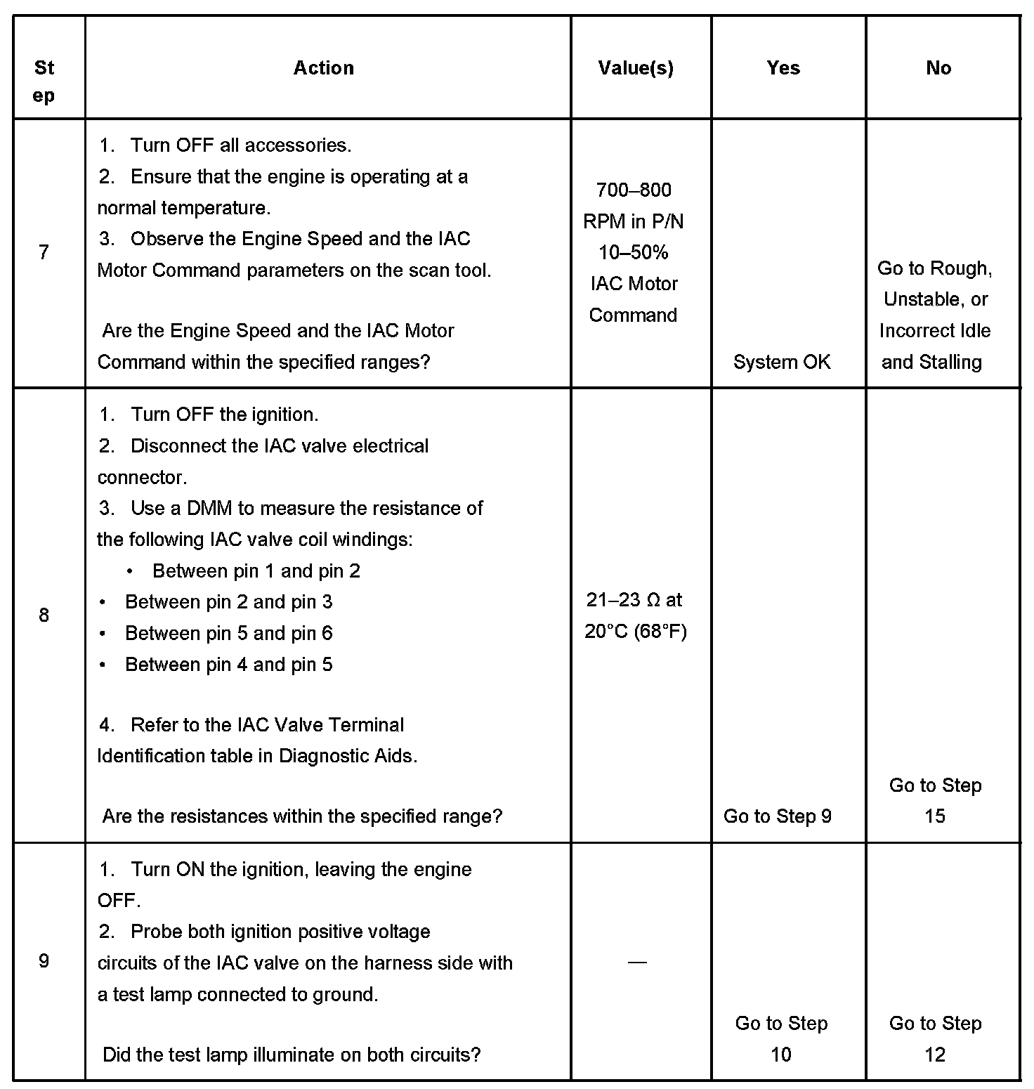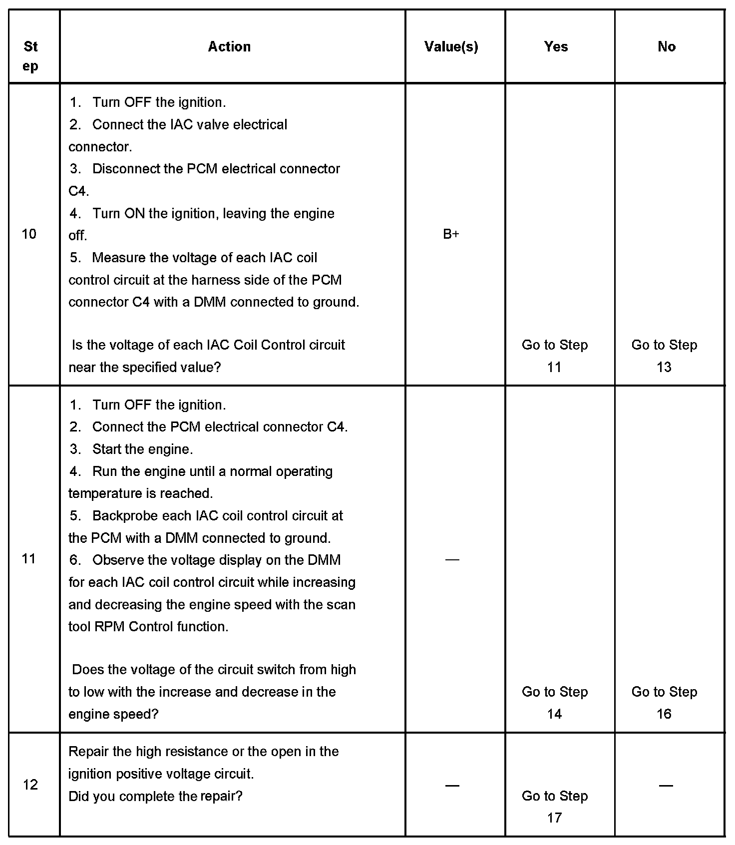 10. This step checks the electrical circuits between the IAC valve and the PCM.