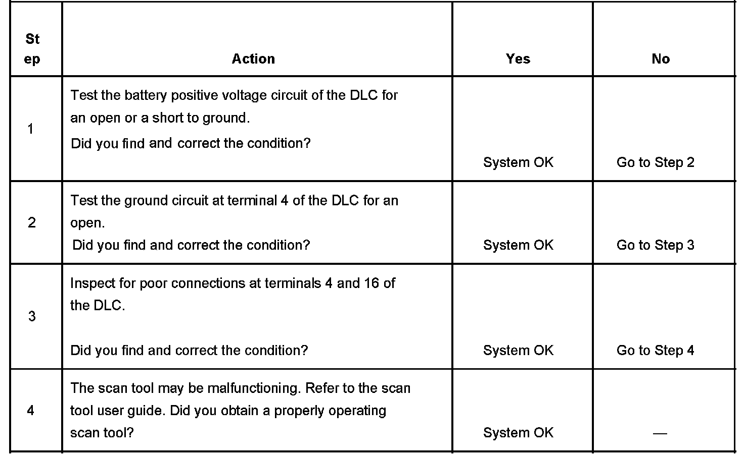 4. The battery positive voltage and ground circuits of the DLC are functioning properly. The malfunction must be due to the scan tool.