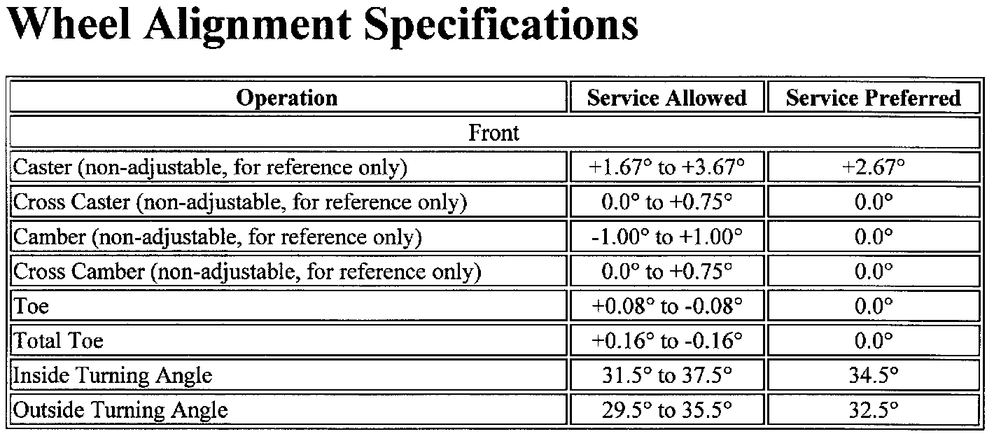 Wheel Alignment Specifications