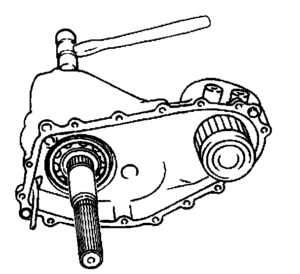 Transfer Case Disassemble (Continued)37. Use a plastic mallet in order to remove the rear output shaft from the center case.