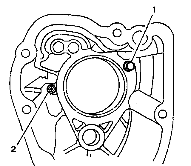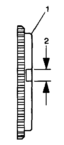 70. Measure the key slot width (2) in the synchronizer outer ring (1) and inspect each chamfered tooth of the gear and the synchronizer ring. If necessary, replace the outer ring.