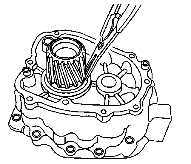 Important: During gear assembly removal, the bearing may move, binding the snap ring in its groove. Apply light pressure with the mallet in order to slide the bearing back to its original position before you attempt to remove the snap ring.