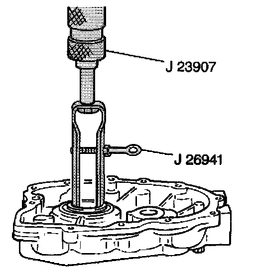 41. Use J 26941 with J 23907 in order to remove the front output shaft oil seal from the center case.