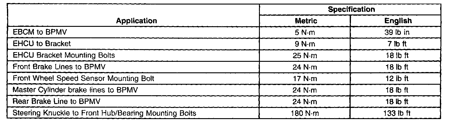 Torque Specifications: