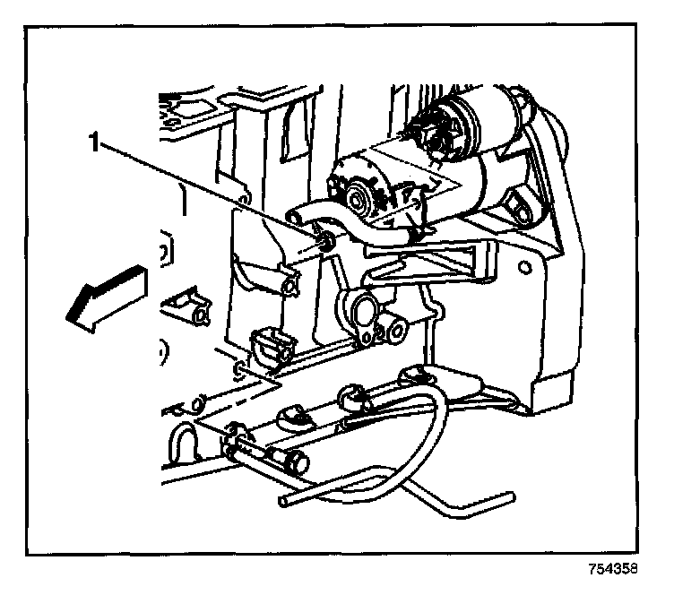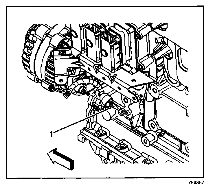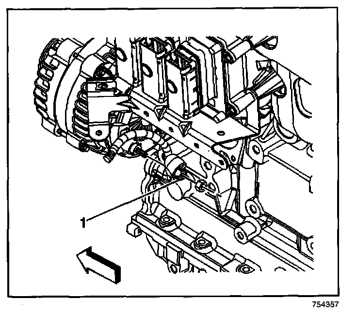 2. Install the battery positive cable to the generator and secure with the nut (1).