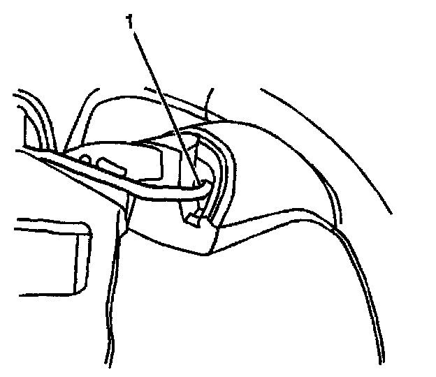 4. Position a blunt ended tool into the wire harness cavity (1) and apply moderate pressure in order to partially remove the steering wheel control switch from the steering wheel.