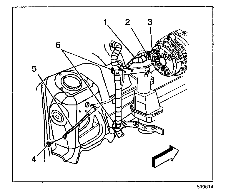 2. Remove the ground terminal bolt (3) that secures the harness to the front fender.