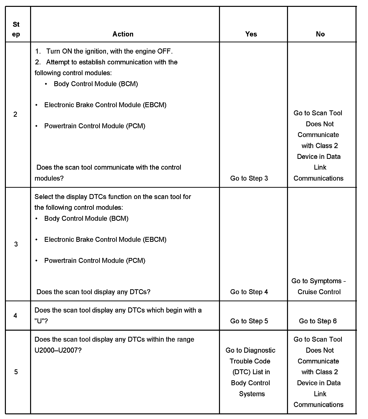 2. Lack of communication may be due to a partial malfunction of the class 2 serial data circuit or due to a total malfunction of the class 2 serial data circuit. The specified procedure will determine the particular condition.
