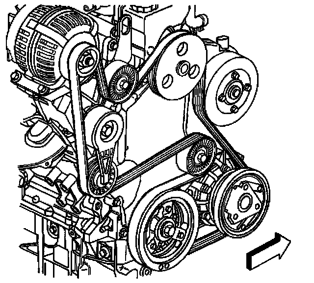 Important: Ensure that the drive belt is aligned into the proper grooves of the accessory drive belt pulleys.