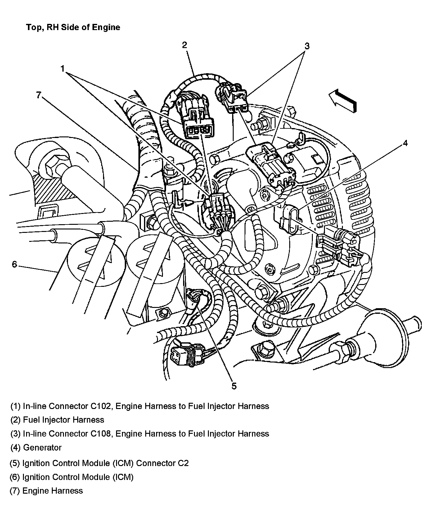 Top, RH Side of Engine:
