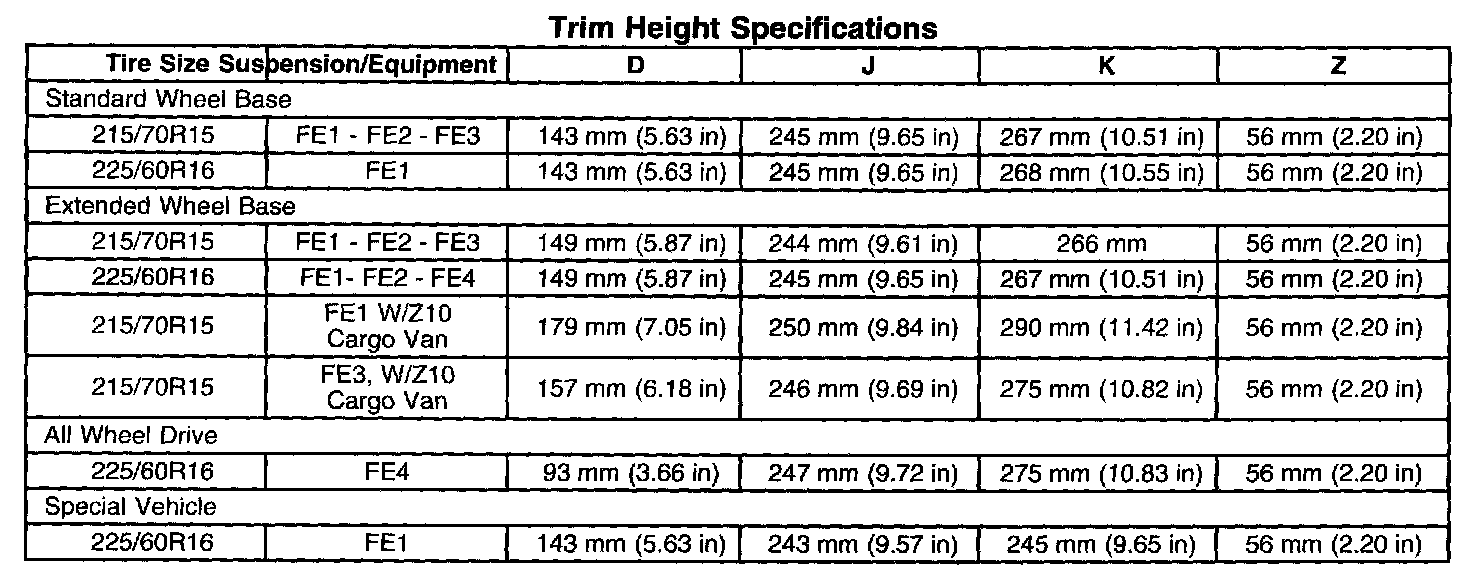 Ride/Trim Height Specifications