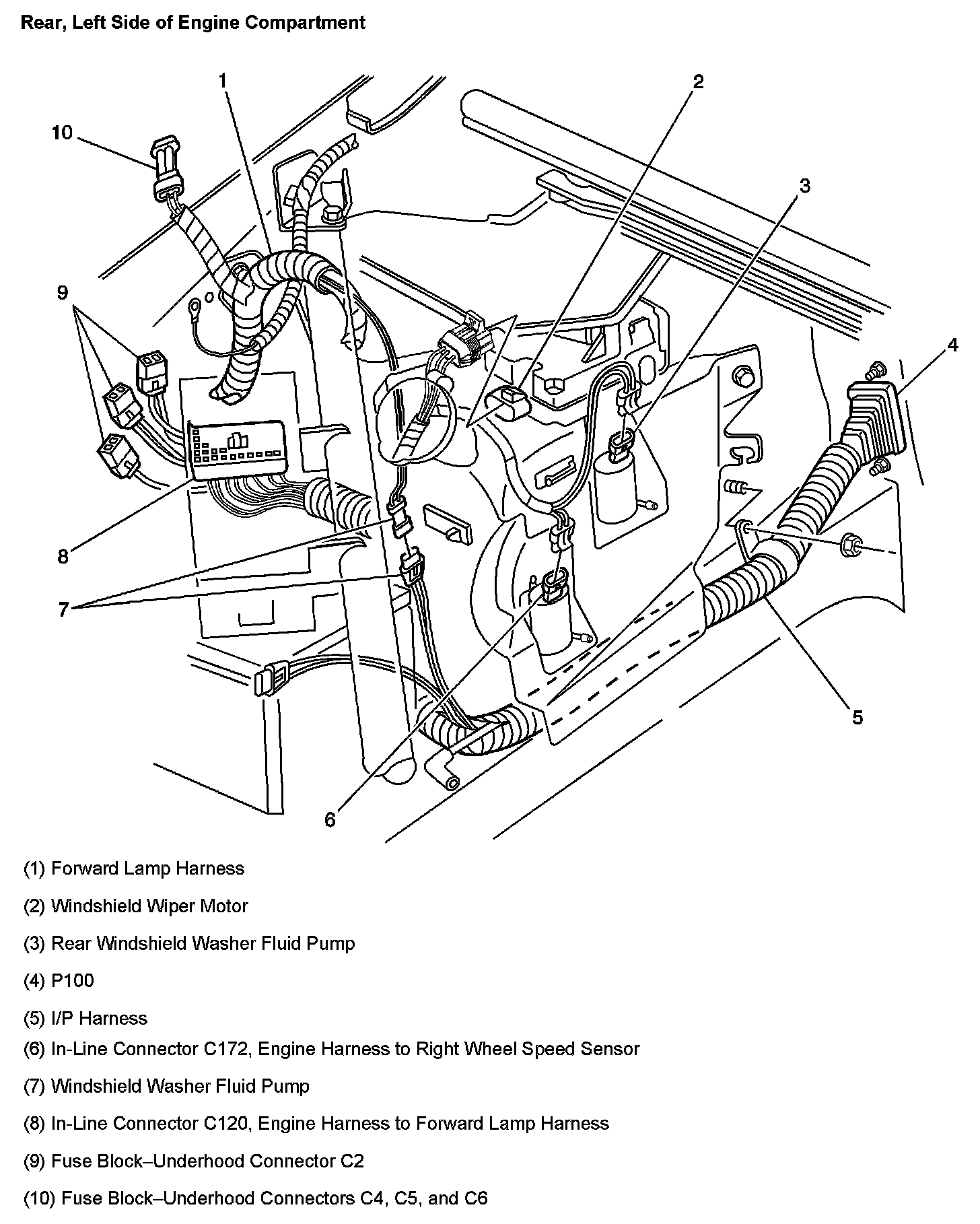 Rear, Left Side Of Engine Compartment: