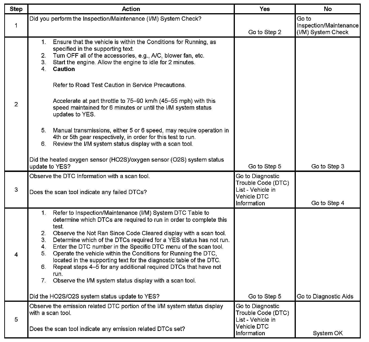 If the status does not update, the test outlined in this procedure can be repeated until the I/M system status updates to YES.