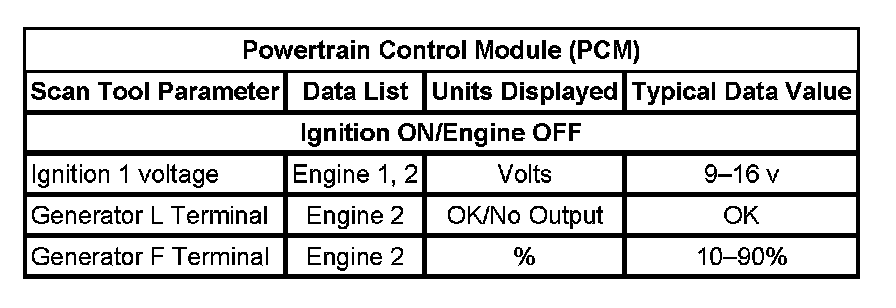 Scan Tool Data List - Powertrain Control Module (PCM):