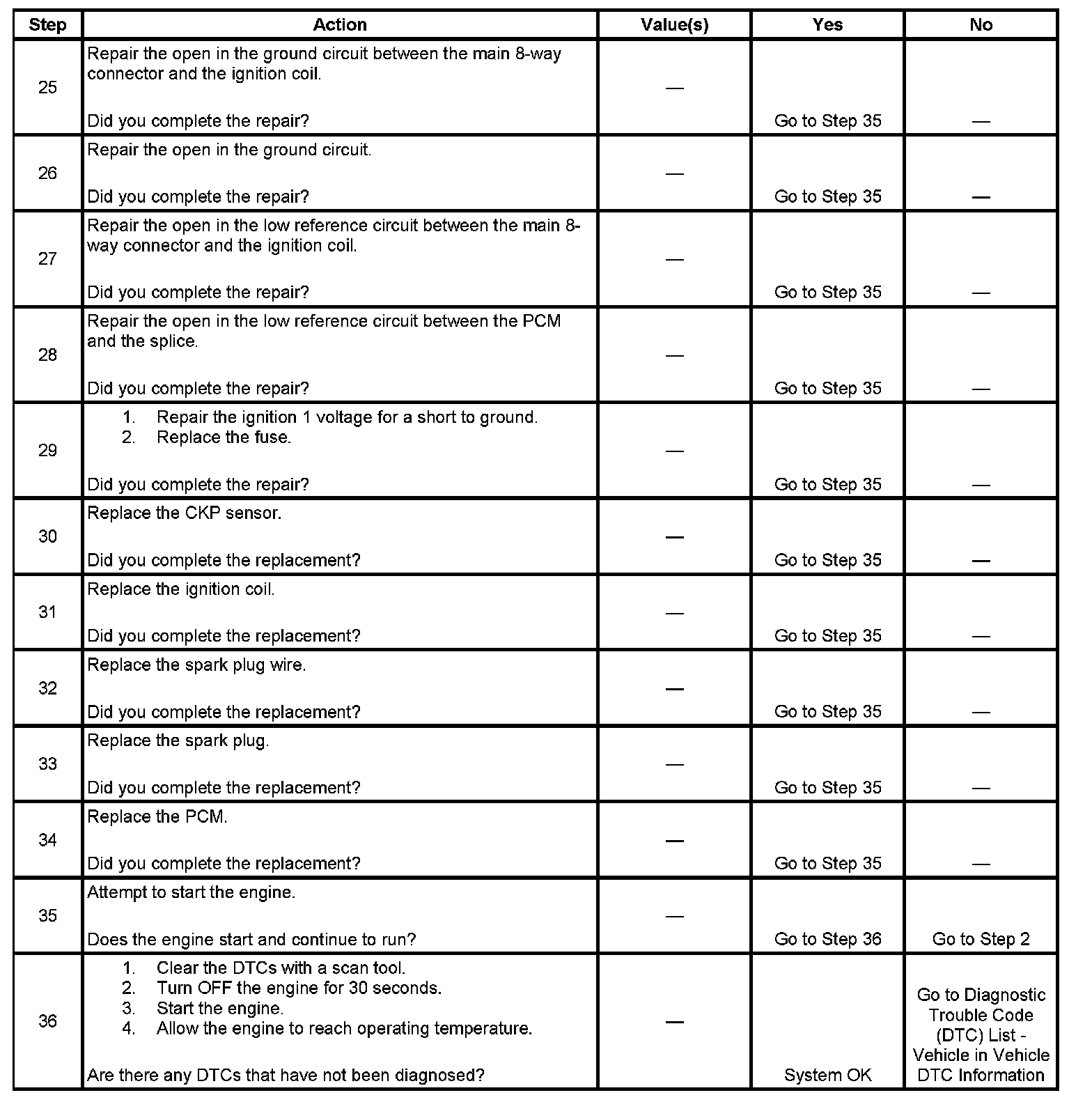 12. A good indication that the fuse is open is all off the misfire current counters are incrementing on one side of the engine. Inspect the ignition positive voltage circuit for a grounded circuit. If the fuse is open and the ignition coil circuits are OK, inspect the injector circuits for being grounded.