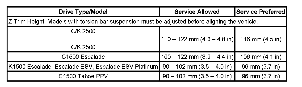 Trim Height Specifications