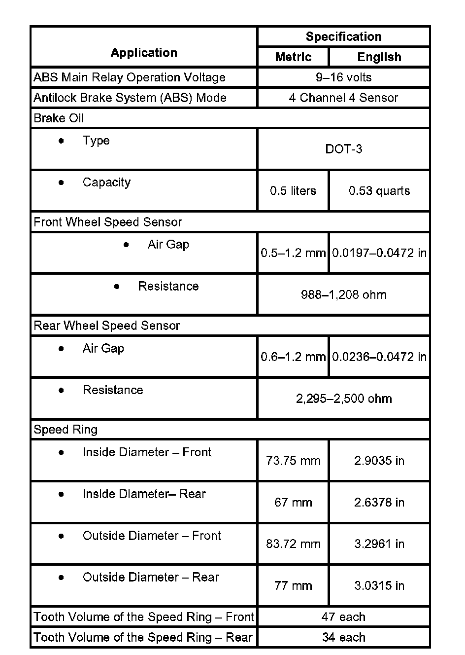 ABS Component Specifications