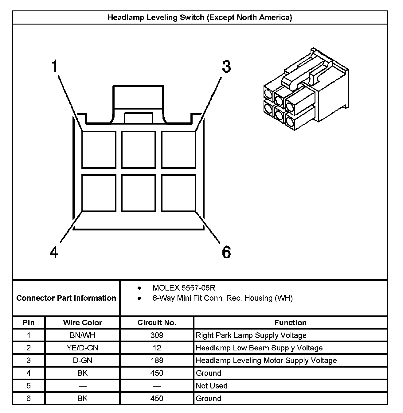 Headlamp Leveling Switch (Except North America):